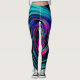 Dramatic Black and Turcos Abstrakt Retro Twirl Leggings