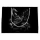 En slående svart-vit schacktematisk design som visar ett dramatiskt ögonblick när en riddare tar ner kung. Med ett biografiskt stil med hög kontrast är denna konst perfekt för schack älskare, strateger och intellektuella. Perfekt för T-shirts, poster, speltillbehör och heminredning. Ett måste för schackentusiaster och konkurrenskraftiga sinnen!
