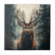En kraftfull och dramatisk scen av en älg som står stolt i skogen, dess stora småföretag som håller sig över den täta skogen. De djupa skuggorna och den mystiska atmosfären runt älken skapar en känsla av mysterium och styrka, som fångar naturens råa skönhet.