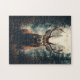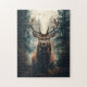 En kraftfull och dramatisk scen av en älg som står stolt i skogen, dess stora småföretag som håller sig över den täta skogen. De djupa skuggorna och den mystiska atmosfären runt älken skapar en känsla av mysterium och styrka, som fångar naturens råa skönhet.
