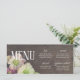 Menykort med levande vår blommar i moody och muterade toner mot en mörk valnötstruss. Enkel text låter din gäst veta vad som finns i butik. Den här designen är en del av vår judiska box Hellebore Harvest Collection. Besök vår butik för mer design.