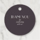 Rundfavorittaggar med vattenfärgade blommor i elegant och guld med vacker grön bakgrund på mörk lila brun bakgrund. De här märkrna visar namnen på framsidan och tack för ditt budskap på baksidan. Perfekt för möhippor, bröllopsfavörer eller alla bröllop-evenemang med mera. MATCHING-objekt i vår butik.