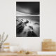 Fotografi över lång exponering av ett gammalt rockigt pier som försvinner i vågigt hav.