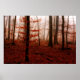 Dramatisk röd dimmig vintersnölös skog poster