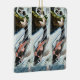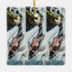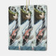 Kintarō Seizes the Carp (1885) är en dynamisk träsnittsdiptyk av Tsukioka Yoshitoshi, den siste store mästaren inom ukiyo-e. Denna kraftfulla komposition fångar den legendariske "gyllene pojken" Kintarō när han dyker ner i en vattenfall för att brottas med en jättelik svart karp. Yoshitoshis nyskapande användning av vertikalt utrymme och virvlande blått vatten skapar en känsla av enorm energi och rörelse. Konstnären balanserar mästerligt hjältens råa styrka med ömtåliga detaljer, såsom de glimmerdammbeströdda vattendropparna. Detta verk exemplifierar Yoshitoshis förmåga att vitalisera traditionell japansk folklore med en modern, dramatisk flärd, och symboliserar mod och övernaturlig kraft