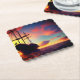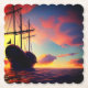 En siluett av ett segelfartyg driver över lugna vatten under en lysande solnedgångshimmel fylld med rika orange, röda och lila nyanser. Den jämna horisontlinjen och den reflekterande havsytan skapar en lugn men kraftfull komposition som känns äventyrlig, nostalgisk och visuellt fängslande.