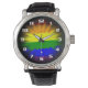 Dramatiskt och vackert Sunburst Rainbow Flagga Armbandsur