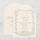 Drawn Green Pink Bow Floral Summer Arched Wedding Inbjudningar