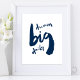 Unleash Your Potential Every Single Day! Let this bold, inspiring artwork be your daily reminder to reach for the stars. The powerful phrase "Dream Big Daily" is rendered in a dynamic, hand-painted brush stroke style that commands attention and injects energy into any space, in Navy Blue theme. Perfect for your home, your works and as a gifts.