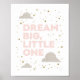 Söker efter modern leksakskonst? Titta inte längre! Splendid Supply Co.'s samling av färska väggkonst är inte bara söt (utan inte cutesy!), utan kan arbeta i vilket rum som helst i stil. Med madame guld-stjärnor och beklädda moln kommer vår söta "Dream Big, Little One"-design att få din lilla man eller lilla dam av att sova med gott om önskemål för morgondagen och varje dag därefter!