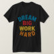 Vi presenterar en enkel men kraftfull t-shirt-design som förkroppsligar ambitionsandan och uthålligheten. Texten "Dream Big, Work Hard" visas på en framträdande plats, med varje ord i ett dynamiskt färg: "Dream" i en levande blå, "Big" i en fet röd, "Work" i en ljus gult och "Hard" i en grym orange. Utformningen är utformad i ett runt mönster och skapar ett visuellt tilltalande och motiverat meddelande. Ställd mot en ren, vit bakgrund framstår typografin vackert, fånga uppmärksamhet och inspirera dem som ser den. Den här t-shirt-designen är perfekt för kunder som tittar en snyggt och inspirerande tillskott till sin garderob. #DreamBigWorkHard #MotivationalTShirt #TypographyDesign #BoldColors #FashionWear #InspiringMessage #StylishTeeShirt #Ambition #PositiveVibes #TShirtFashion #ModernDesign #TeeShirtStyle #FashionStatement