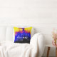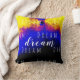 På framsidan av kudden visas "Dream" i ett fet, skript som läggs ovanpå rader av upprepat enkelt brev, båda i vitt, och pekar på vikten av att drömma i dess många betydelser. Detta uppmuntrande, inspirerande budskap visas på en djup blå, burgundröd och gult, smart abstrakt konst design. På andra sidan, samma utformning utan meddelande.