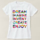 Drömma, Föreställ dig, Invent, Skapa, Njoy. En elegant och unik t-shirt för vem som helst. Glöm inte att välja en annan stil, färg, storlek, gender av kläderna. Anpassade. Du kan ändra bilden. Du kan överföra den här designen till ett antal andra produkter. Om du vill justera bilden till en produkts utskrivbara område användor du knappen "Redigera design" eller "Anpassa den här mallen —> Information". Var kreativ, köp den vackra presenten för dina familjemedlemmar, vänner eller för dig själv, njut och var lycklig!