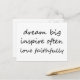 Ord att leva vid. Drömma stor, inspirera alltid ofta, forever love troget. I ett kursivt teckensnitt för eleganten.