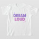 A bold typographic design featuring the phrase “DREAM LOUD” in all caps, glowing with a purple-to-pink gradient and surrounded by sparkles. Clean, centered, and perfect for youth apparel, POD merchandise, and expressive baby fashion. Sized at 4500×5400 pixels with 300dpi resolution and transparent background.