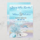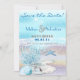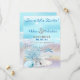 Mörkare Brighter Teal Tones Dreamy mjuk strandbakgrund som visar havsskummet på sanden - en stjärnfisk, korall, ostron med pärlor inuti och ett hav snigel vid förgrunden. Gör att du vill sparka av dina skor och springa till stranden - Perfektens destinationsbröllop eller andra party inbjudan - all text som fält är anpassade, för att byta till vad som än har party.