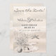 Sand och Sepia Tones Dreamy, strandbotten som visar havsskummet på sanden - en stjärnfisk, korall, ostron med pärlor inuti och ett hav snigel vid förgrunden. Gör att du vill sparka av dina skor och springa till stranden - Perfektens destinationsbröllop eller andra party inbjudan - all text som fält är anpassade, för att byta till vad som än har party.