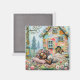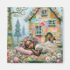 En ung flicka med färgstarka blommor i håret sover fredligt framför ett viskliknande hus som består av olika färgstarka pappra skrapor. Swirling träd och blommande blommor omger scenen och skapar en drömliknande atmosfär. Digital Art Photoshop CS5