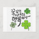 Koreansk kalligrafisk grafik med den inspirerande frasen "꿈 꾸 사 람 행 öppningsmöjlighet" (Dreamers Is Lycklig), vackert dekorerad med fyra löv klöver som representerar tur, hopp och lycka.