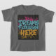 T-shirten innehåller meddelandet "Dreams Flourish Herel" i en pulserande multifärgad design. Varje ord är ett annat starkt färg, som skapar en känsla av optimism och möjligheter. (Du kan välja en specifik detalj från det genererade bilderna som ska läggas till här, t.ex. "brev är handmålat" eller "Blandningen färg i en mjuk övertoning").