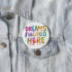 Med den här knappen visas den skarpa frasen "Dreams Fulfill here" i fetstil och sjudande text, där uppmärksamheten fångas upp med det otrevliga meddelandet. Utformningen accentueras med drömmande motiv som stjärnor och moln, som tillför en liten aning stollig och inspiration. Den här knappen är tillverkad med hållbara material och en säker stift-back-förslutning och är en perfekt för att lägga till ett motiv i ryggsäckar, jacka, hattar eller valfritt tillbehör. Oavsett om den används som en personlig påminnelse eller delas som en uppmuntrande symbol, är denna "Dreams Fulfill here"-knapp en liten men kraftfull påstående av hopp, ambition och drömjakt.