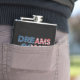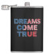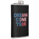 En levande och inspirerande design med frasen "Dreams Kom True" i fet, patriotisk färg av rött, vitt och blått. Texten återges i ett dynamiskt typsnitt som fångar upp öga och ger en känsla av hopp och möjligheter. Den övergripande sammansättningen är ren och opassande, vilket uppmuntrar tittarna att tro på sina drömmar och sträva efter framgång.