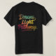 Den här vibrerande t-shirt-texten "Dreams Light Pathways" i ett fet, handskrivet teckensnitt. Texten ställs in mot en färglös, suddig bakgrund som skapar en dynamisk och energisk känsla. Konstruktionens palett med flera färg och fet typografi gör den till ett synligt slående och öga-fångstande biet.