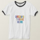 Den här t-shirten innehåller meddelandet "Dreams Thrive here" i en sjudande övertoning av multifärgaden. Varje ord övergår jämnt till nästa, skapande ett harmoniskt flöde mot en vit bakgrund.