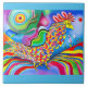 "Dreamscape Bird". En surreal abstrakt cockerel Kakelplatta