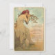 Tack vare det här elegant bröllop-kortet finns en intressant illustration av Art nouveau som inspirerats av Alphonse Muchas ikoniska stil. Framsidan visningar en serenkvinna med krona av rött- och rosa blommor, som lutar sig på ett skonsamt sätt mitt i känsliga viner och pastel himmel, medan en försiktig reflektion från vatten förstärker den eteriska ambitionen. Den mjuka paletten pastellkräm, , himmel blå och sage-grönt skapar en romantisk och nostalgisk känsla, skapar den här kortens perfekt för vintage, naturinspirerat bröllop. Jag vill uttrycka min tacksamhet till nära och kära med denna tidsinställda, konstnärliga design som utstrålar skönhet och sofistikering.