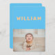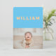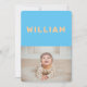 Färgfullt tvåsidigt födelseattest med pastellblått och orange i färger i en contemporary grafisk layout med namn och foto på din nyfödd bebis flicka eller pojke. spädbarn fullt, namn och föräldrarna namn på baksidan kan vara personlig att presentera sitt nyfödda för vänner och familj.