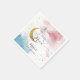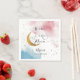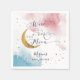 Dreamy Boy och rosa babydusch napkin med vattenfärgen struktur i blått och rosa på baksidan med faux guld glitter måne och stjärnor. I texten står det "vi är över måne".