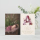 Dreamy Funny Bunny Romantic Floral A Initial in Burgundy & Gold Glitter Effect for Newborn Photo Announcement Card Design.