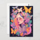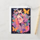 Ett vackert vykort med en serene porträtt av en kvinna omgiven av färgstarka fjärilar och vibrerande blommor, perfekt för att skicka en aning stollig och elegans.