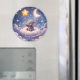 A touch of celestial stunning circular magnet featuring a sweet baby elephant nestled on a fluffy cloud under a glowing crescent moon and golden stars. This high-quality magnet is perfect for decorating your fridge dishwasher or any magnetic surface. The vibrant watercolour textures and deep indigo sky are protected by a durable scratch resistant finish.