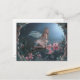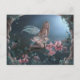 Fantasy-kort med en drömlik älv sitta på en blommar som täckte gren.