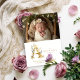 Dreamy Romantic Floral A Initial in Gold Glitter Effect for Newborn Photo Announcement Card Design.