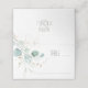 Den känsliga naturen inspirerade till gröna arrangemang, inklusive blågummieukalyptus med stänk i guld och guld löv, tillsammans med unika designlayouter, gör detta till en spännande bröllop-uppsättning när som helst på året. Det samordnande platskort för bord som visas här har ett lush foliage-hörn gräns på framsidan, på namn och bröllop på baksidan och ett mjukt, vattenfärdigt struktur för insida. Visa samlingslänken på den här sidan om du vill se alla matchande objekt i den här vackra designen eller sök-ID817 om du vill se andra alternativ för den här uppsättningen för biet och färg.