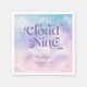 Dreamy 9:e födelsedagsfesten papper napkin med vattenfärgad illustration av rosa, lila och blå himmel med moln och stjärnor. I texten står det "moln nio".