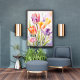 Det här drömmande landskapet har blommande blommor i fullt, med rullande backe och en försiktig bryggning. Perfekt för alla som kärlek natur och vackra landskap.
