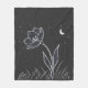 Dreamy Moonlit Flower Line Art med stjärnor Fleecefilt