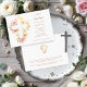 Dreamy Digital Watercolor Pink Shades Floral Cross-Shape Baptism Invitation Cards.