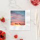 En himmelsk ögonblicksbild av en tropisk solnedgång med en massa blues och pinkar som dansar över himlar utmed solstrålar av orange med en grupp av silhuetterat handflatan träd. Idéisk drömlek.