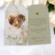 Elegant och hjärta. Den här bröllop-presentfilmen har ett drömt vit ros-foto av Destei som ramlade under ett känsligt vitt överlägg. På framsidan finns en hjärtformad fotomall för paret, parad med ord "Tack" i vackert skript. På baksidan finns en baksida med en grönt med nedsänkt sage-bakgrund med ett litet hjärtsilhuett och utrymme för att lägga till en personlig signering med namn eller ett kort-meddelande. Ett vackert avslutande drag för bröllopsfavoriter eller tänkvärda gåvor.