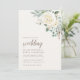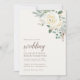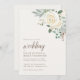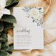 Bröllopsinbjudningar med drömmande vit vinterblommigt och löv.