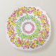 Drei Kränze aus bunten Feldblumen und Blättern in verschiedenen Farbtönen sind konzentrisch auf einem zartrosa Hintergrund angeordnet.