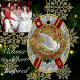 Denna gamla världens europeiskt stilade utsmyckning pryder julgranen med kunglig stil. Bakgrundsbilden av invecklad normandisk spets omsluten av furstliga militäruniformsband, bilden av en Dresdnerkrans av guldfoliepapper, med ädelstenar och förgyllda detaljer, och fredsduvan förenas för att skapa en charmig och ståtlig visuellt uttryck. Denna digitala skiktade design skapades genom att många individuella utsmyckningar placerades noggrant för hand (eller med mus?). Baksidan är lika praktfull. Den kan anpassas med årtal, personligt hälsningsfras och personnamn (eller familjenamn) för att skapa en unik present eller familjeskatt. Ta en titt på alla våra 'Dresden Christmas' utsmyckade presenter och heminredningar från Cheeky_P