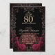 Dress,Tiara,Red Roses Gothic Frame 80th Birthday Inbjudningar