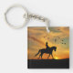 En fredlig bild av ett dressyr- och häst vid solnedgång med fåglar. Det visar på harmonin mellan häst och förare.