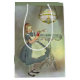 En glansig presentpåse med en vintage Alice i underlandsbilden, på framsidan av Alice som står vid bord mot en blommigt som ljuder och håller berömden "drick mig" flaska. Se matchning av stor presentväska, konfekt, favoritväska, presentväska, märkre, etikett och förpackning papper. Se hela Wonderland Gift Bag-samlingen i SPECIELLA TUUCHES | Avsnittet Party favors.